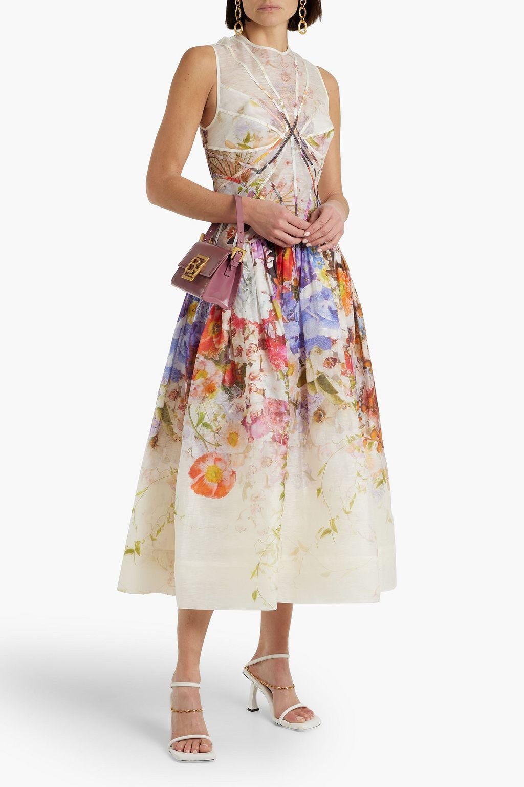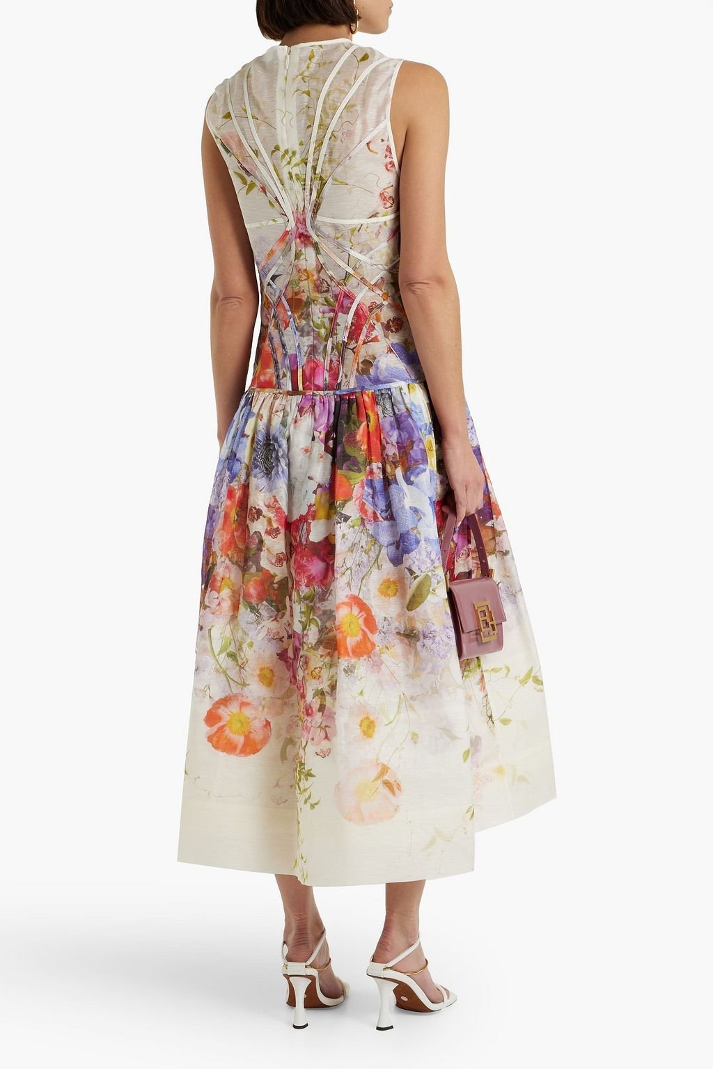 Mignon Baskılı Biyeli A Kesim Midi Elbise