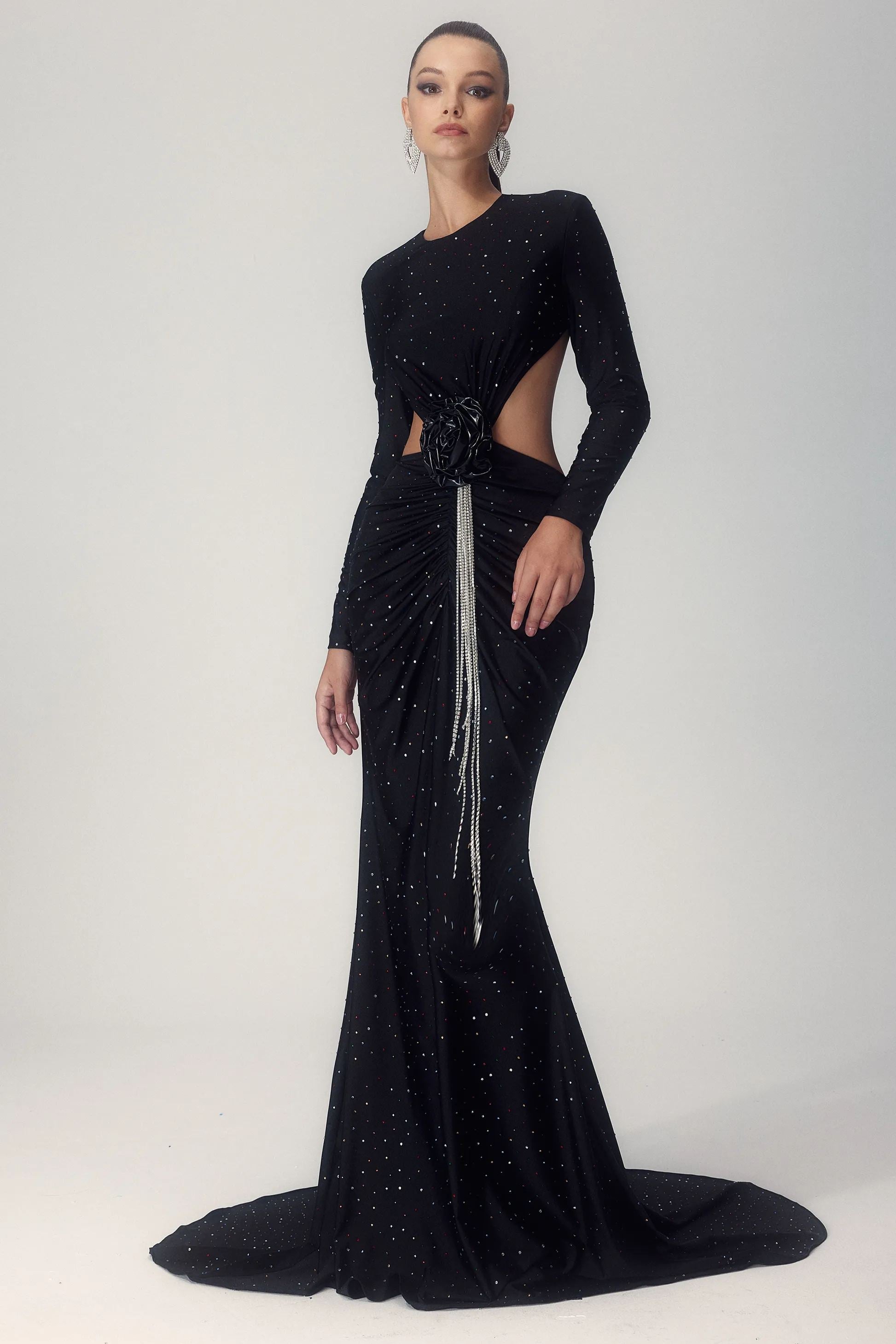 Mirabelle Diamante Çiçek Sırtı Açık Uzun Elbise