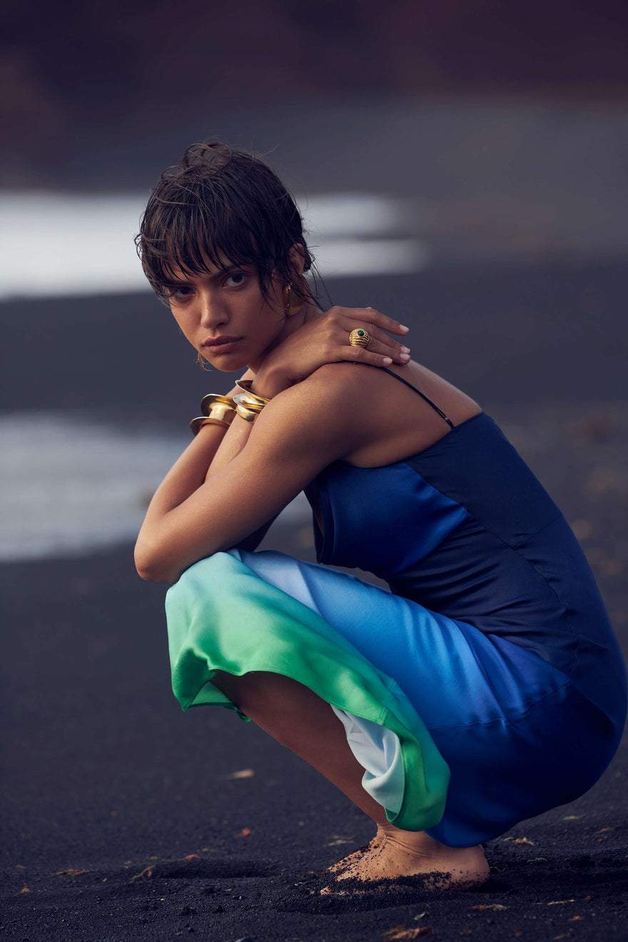 Monica Baskılı Salıncak Yaka Maxi Slip Elbise