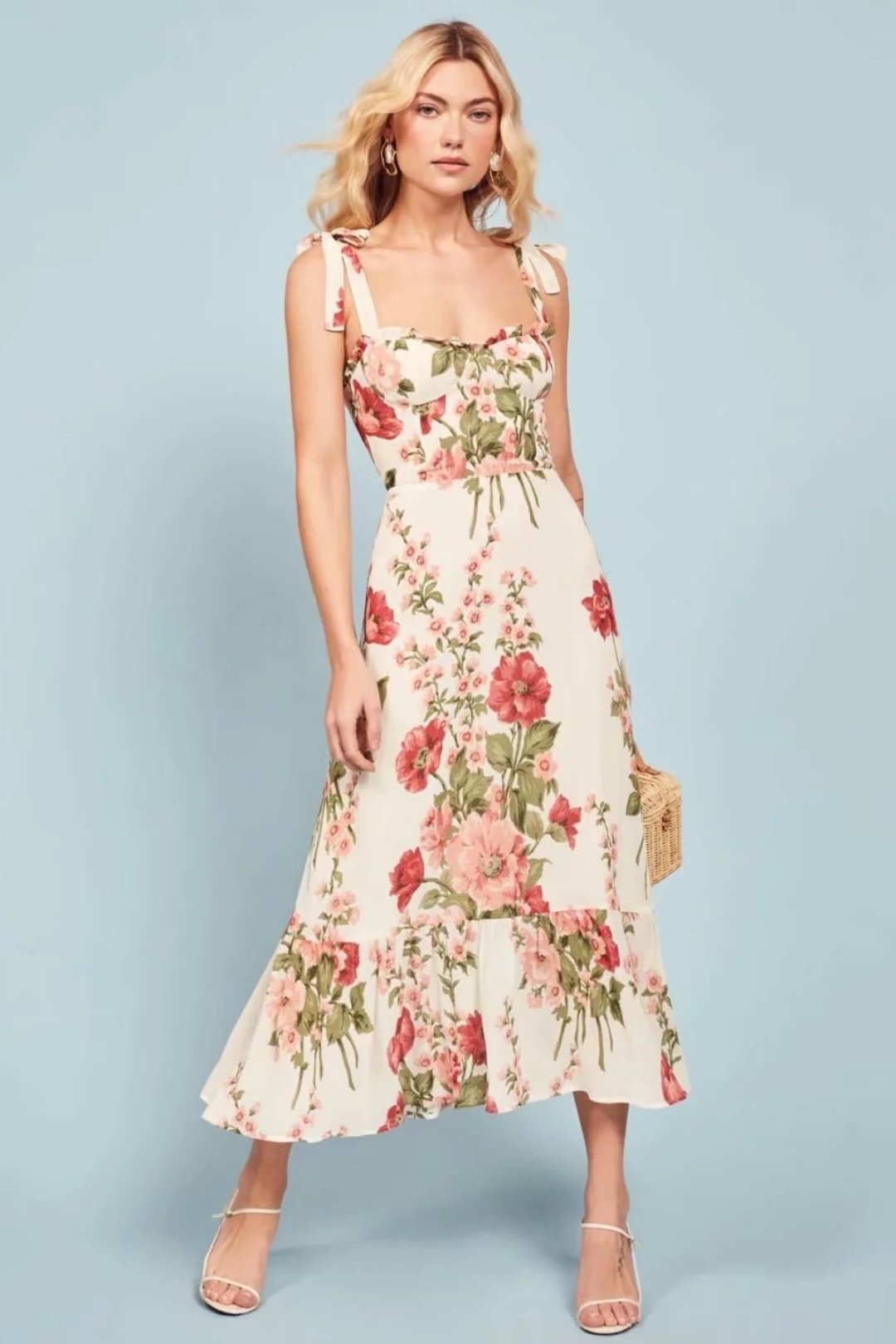 Nela Baskılı Papyon Askılı Midi Elbise