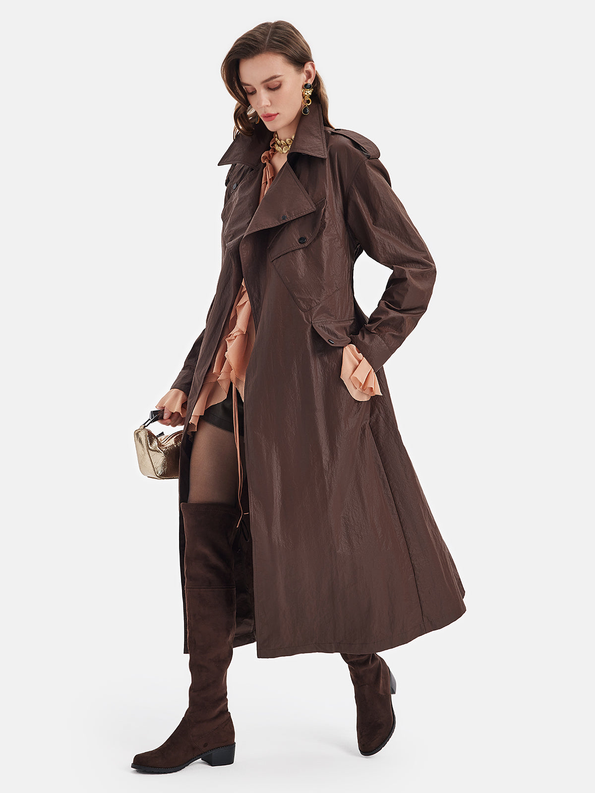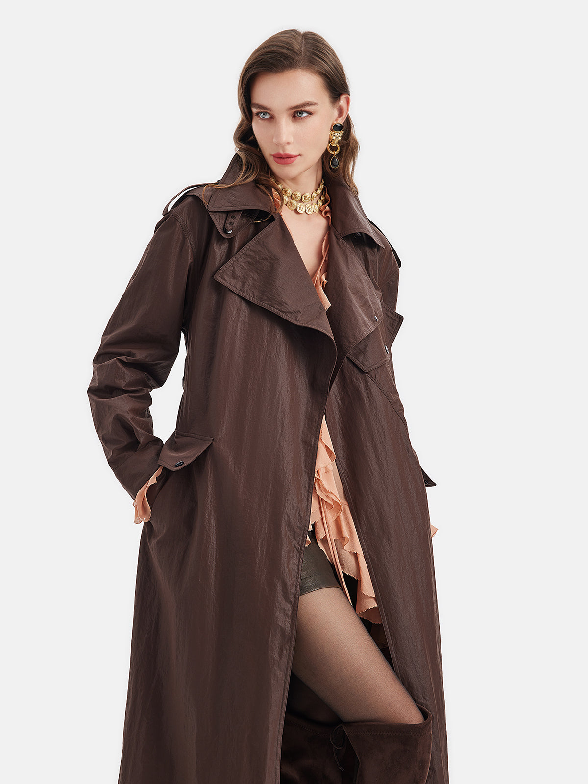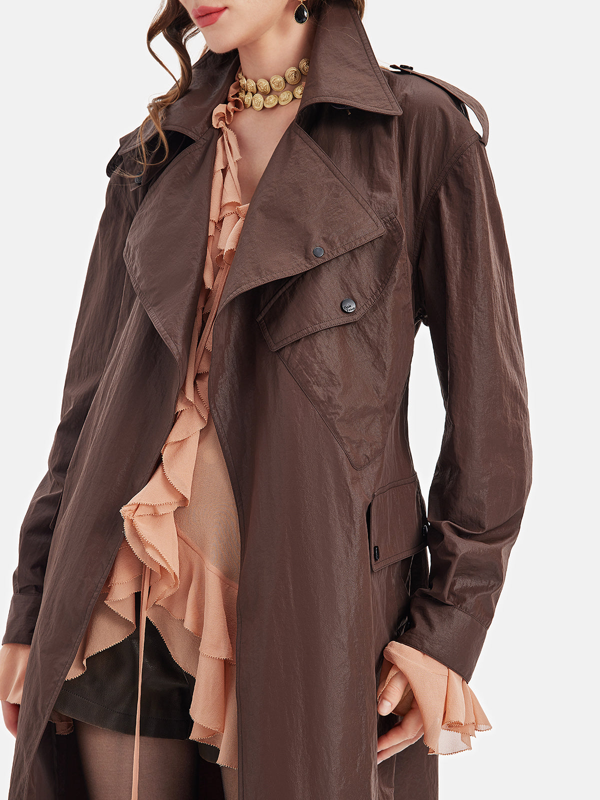 Yağlı Mumlu Kağıt Dokulu Trençkot