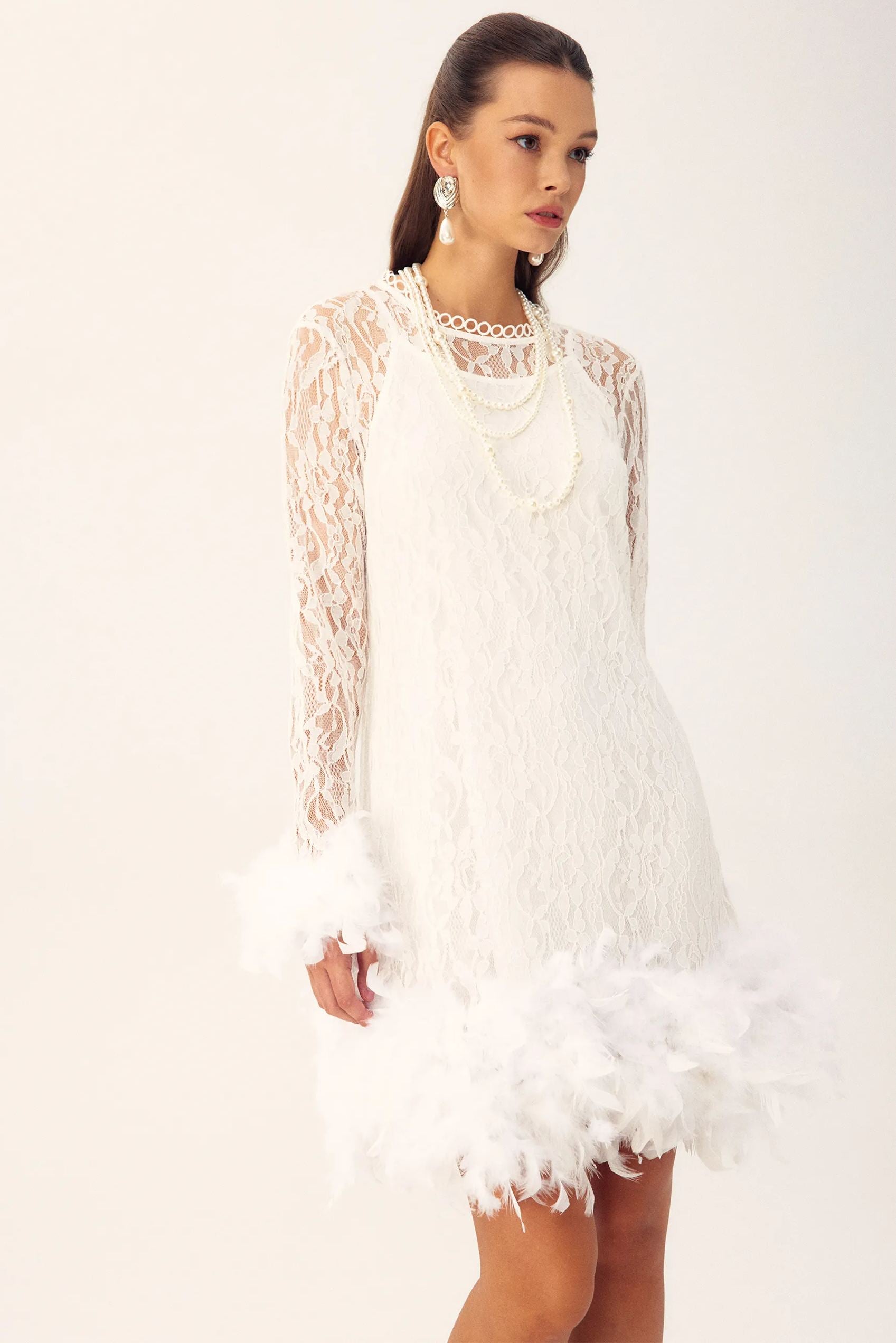 Patricia Tüy Uzun Kollu Mini Dantel Elbise