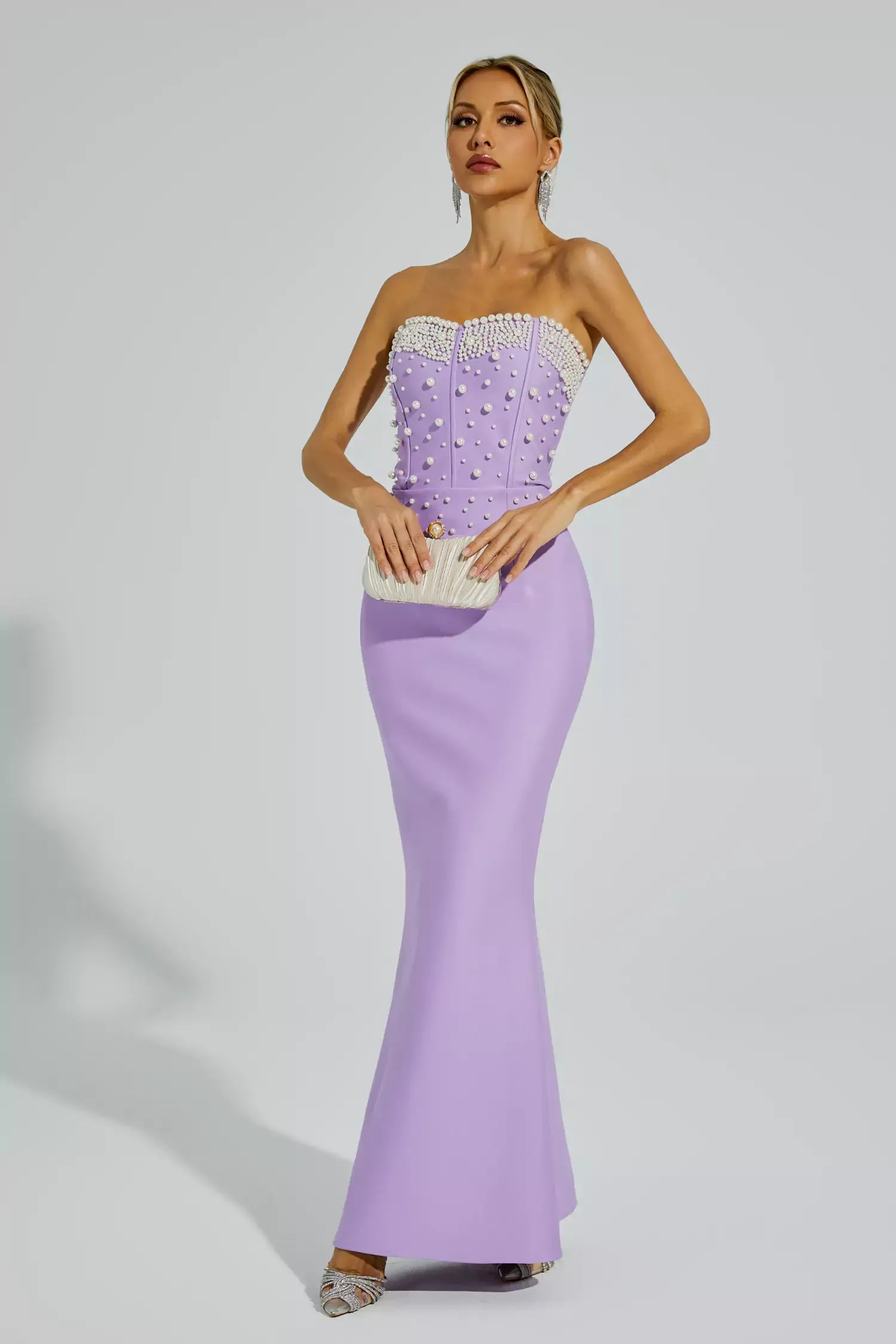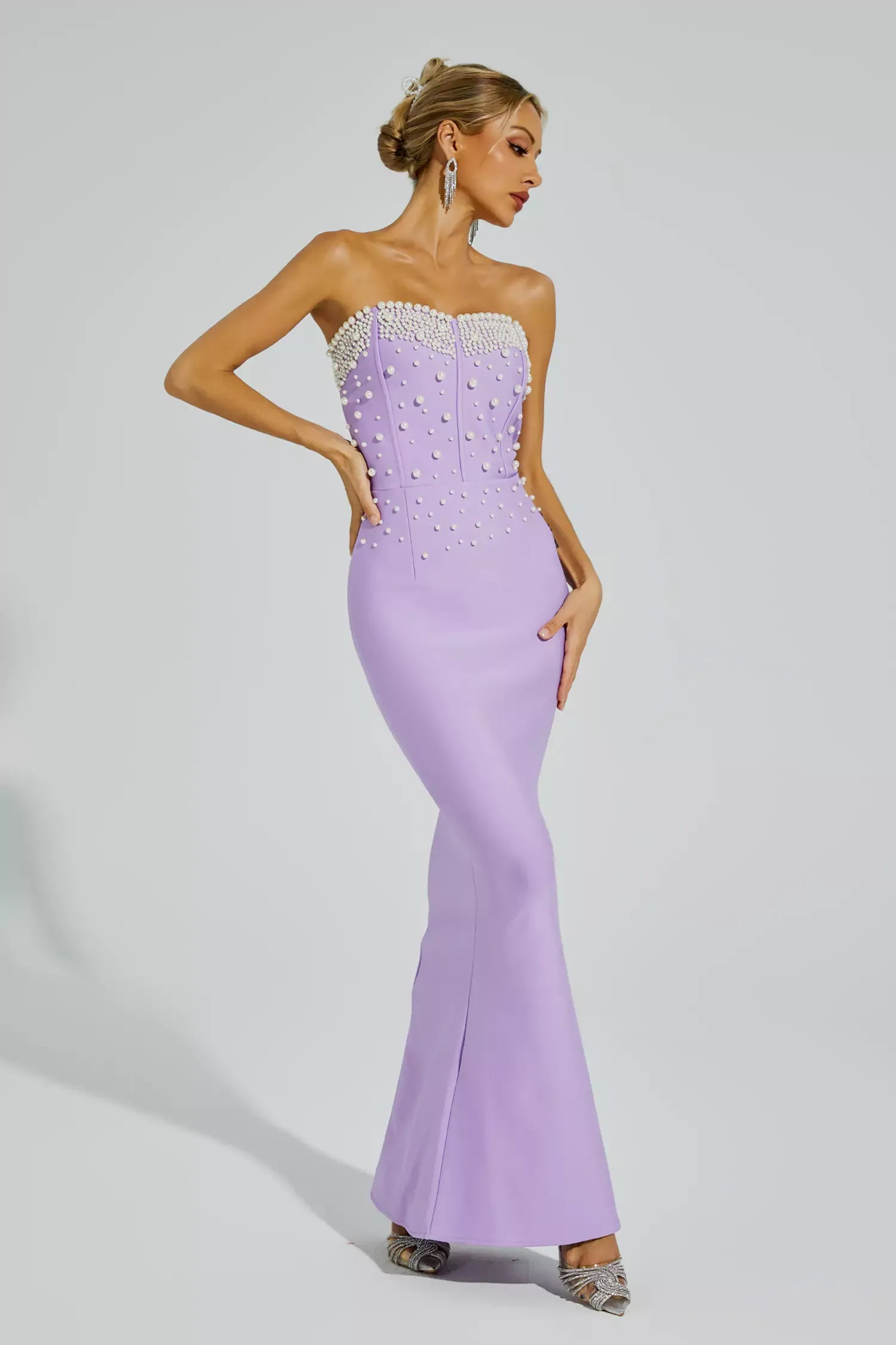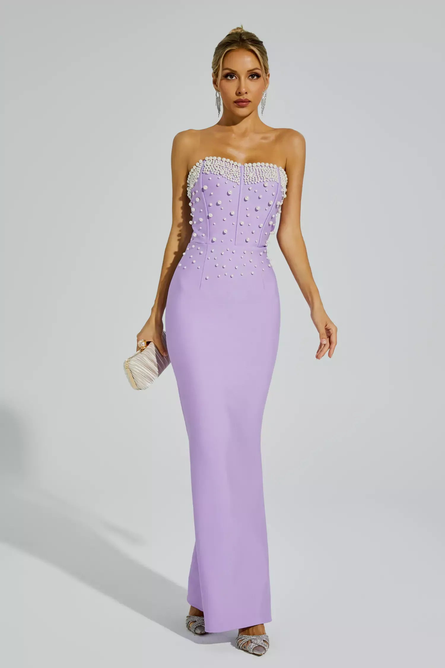 Rebekah Mor Boncuklu Bandaj Maxi Elbise