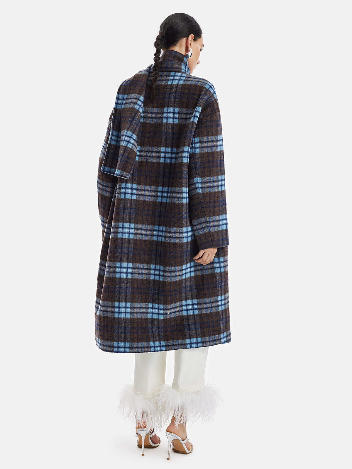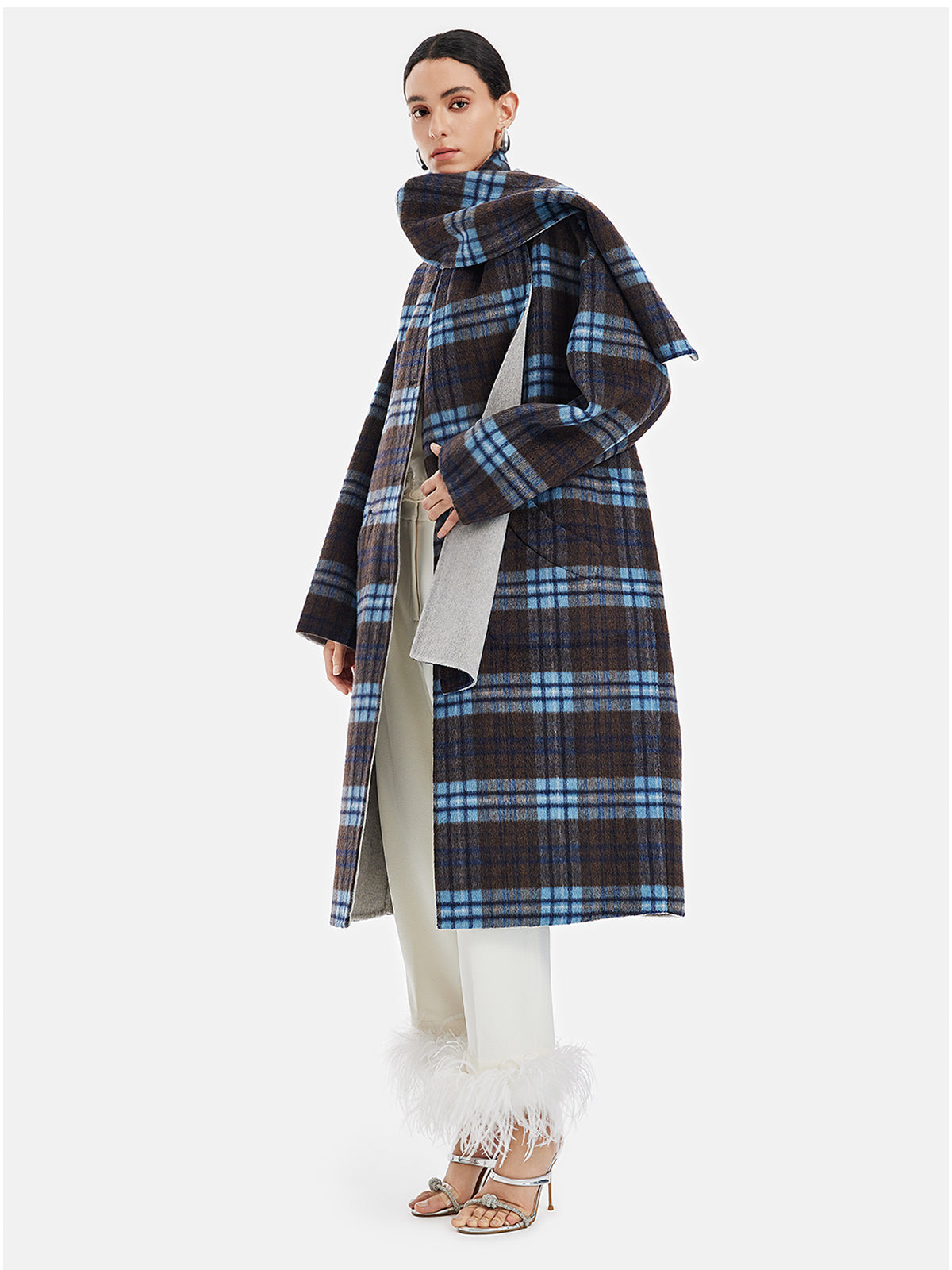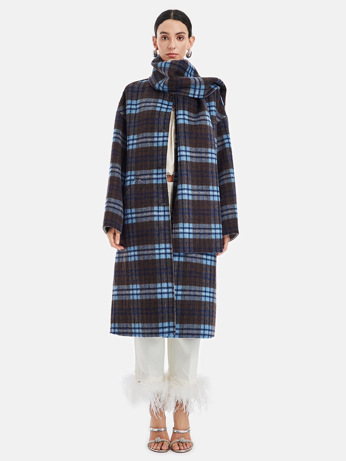 Çıkarılabilir Eşarplı Retro Ekose Kaban