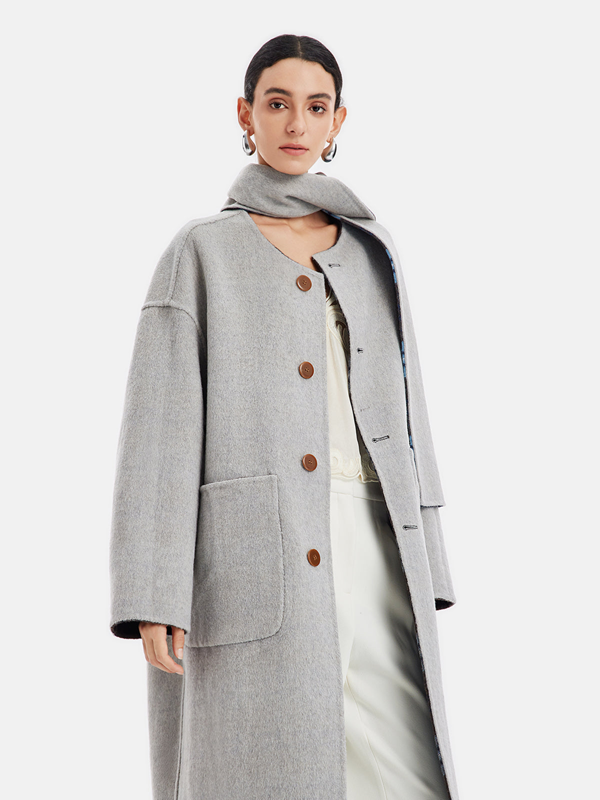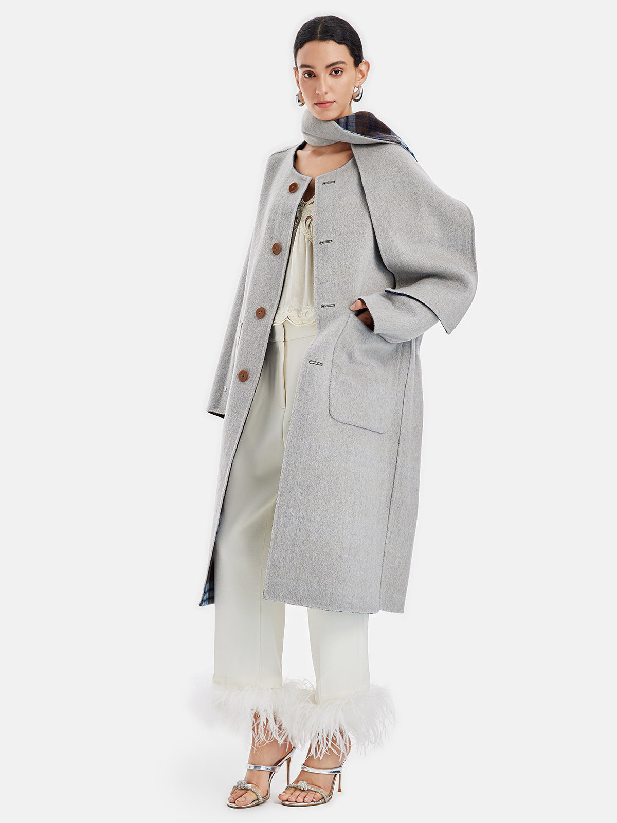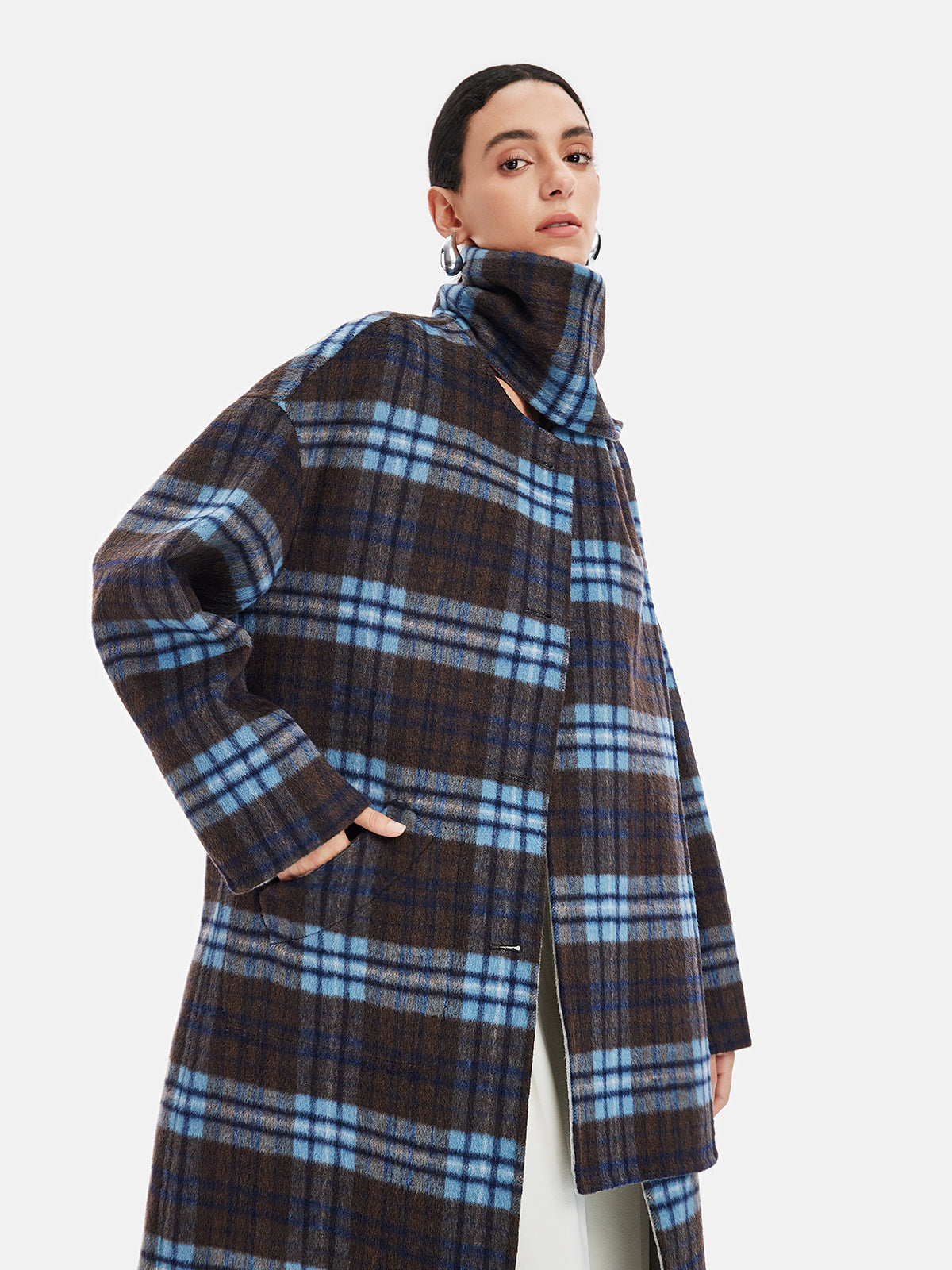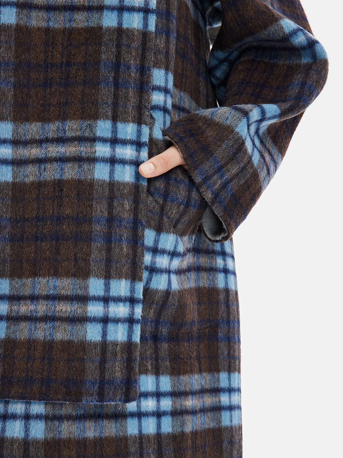 Çıkarılabilir Eşarplı Retro Ekose Kaban