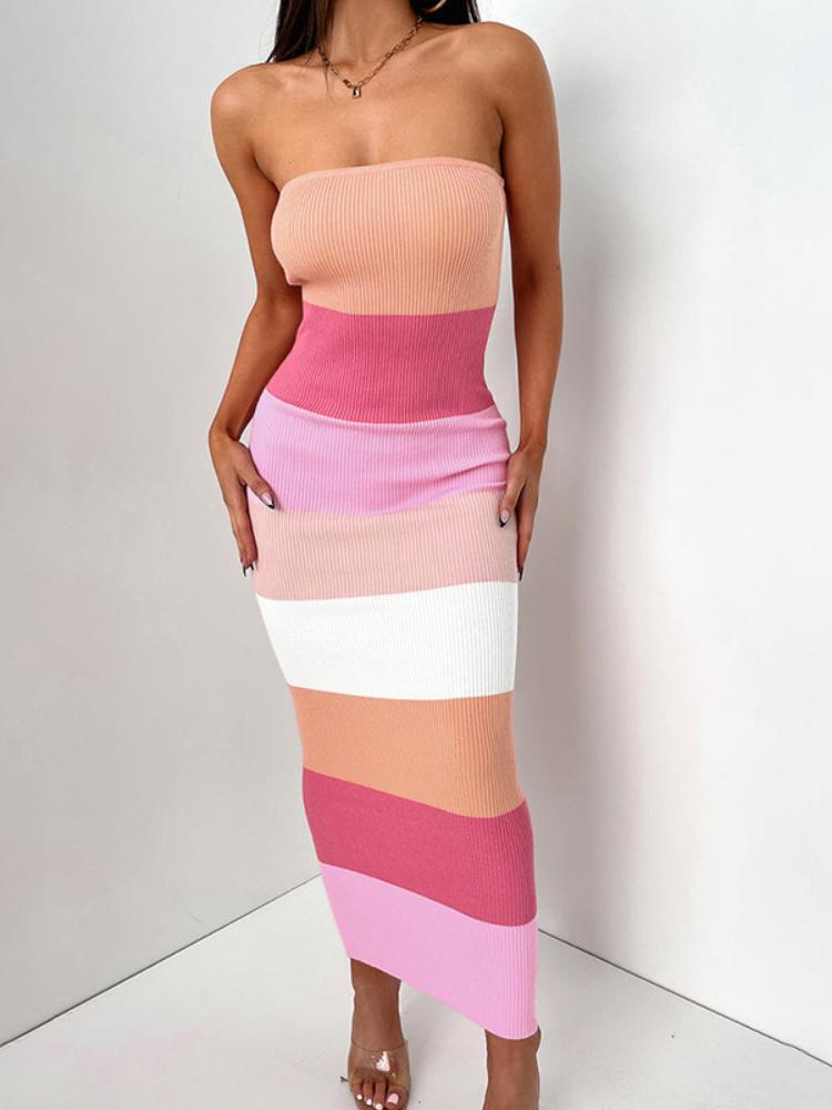 Ruth Örgü Çizgili Uzun Tüp Elbise