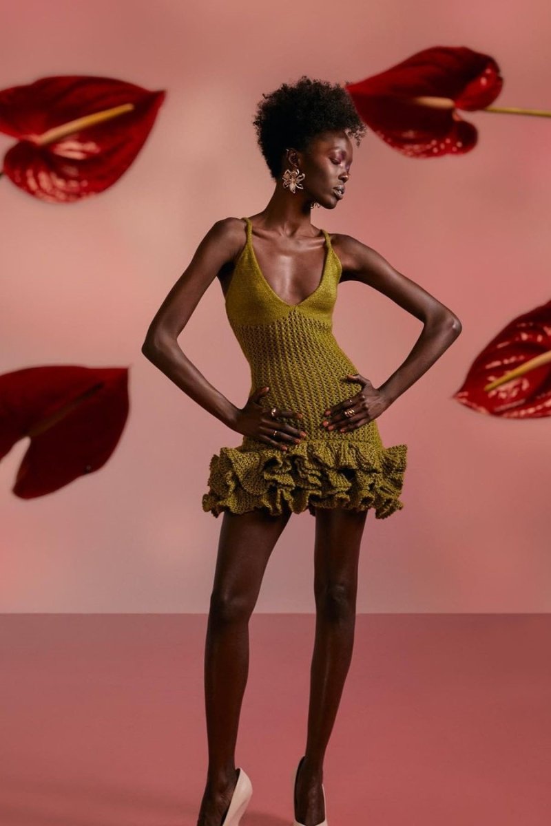 Sara V Yaka Fırfırlı Etek Örgü Mini Elbise