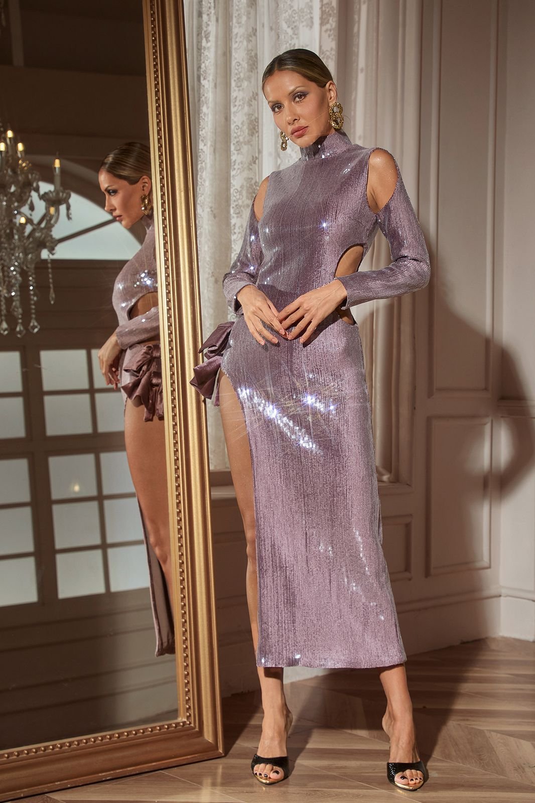 Seabi Uzun Kollu Payet Kesimli Maxi Elbise