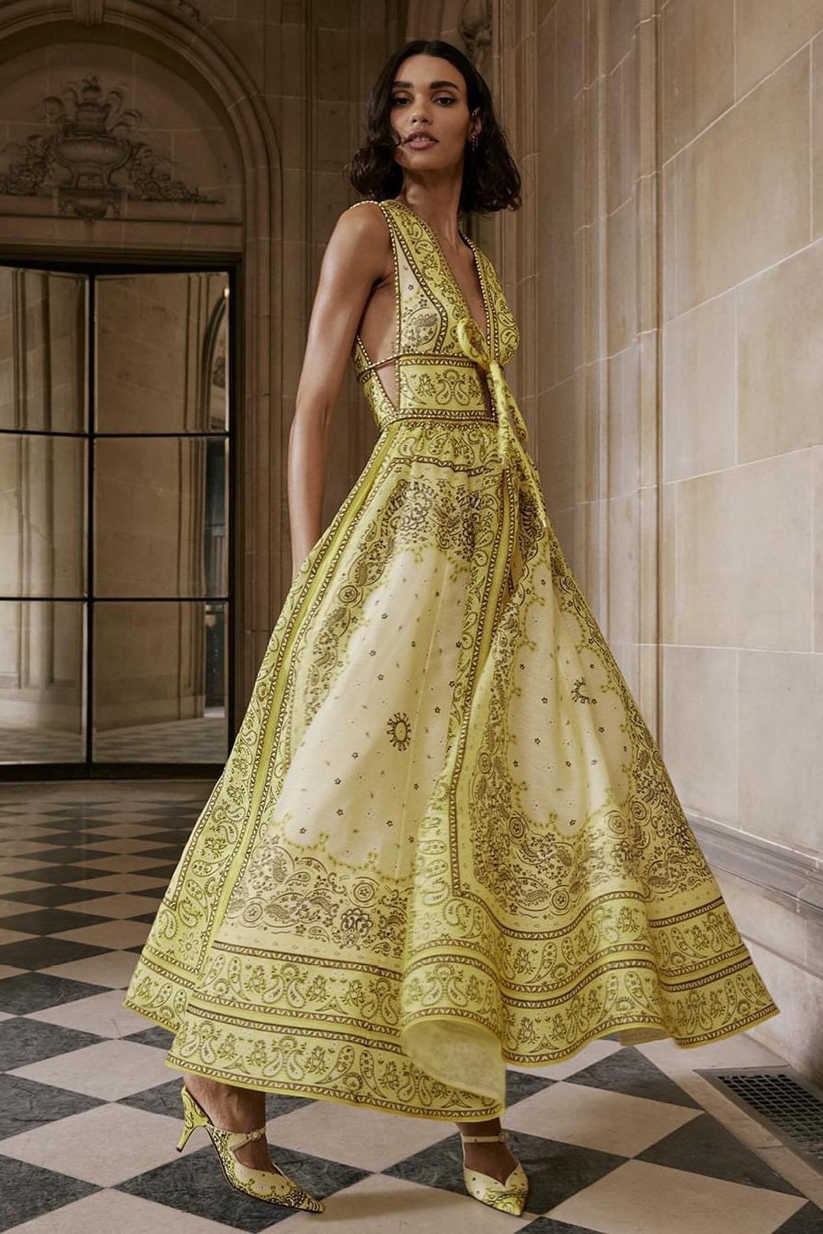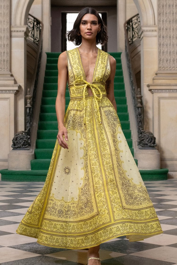 Simona Baskılı V Yaka Flare Maxi Elbise
