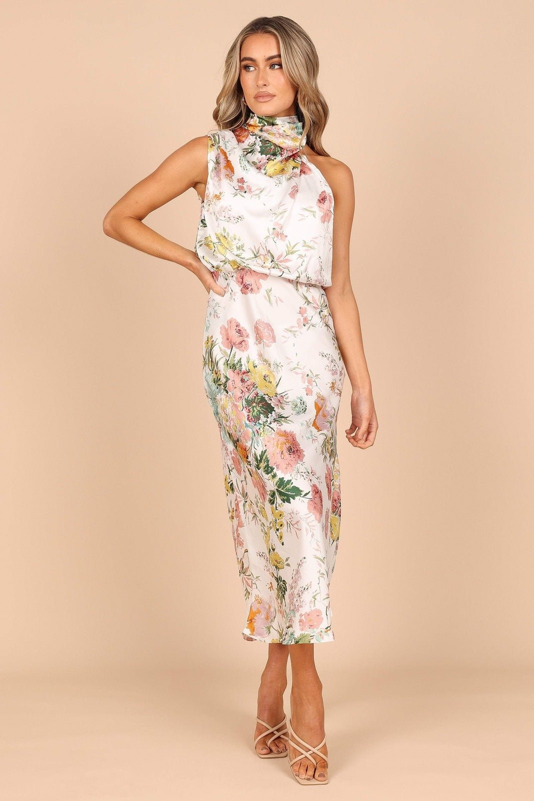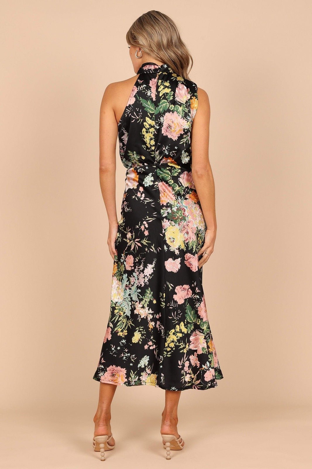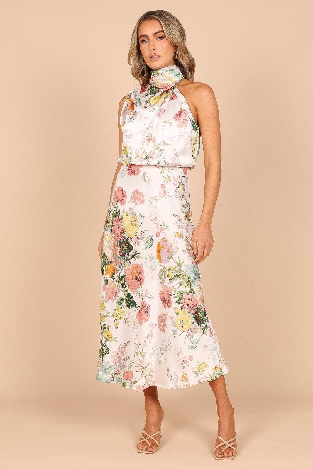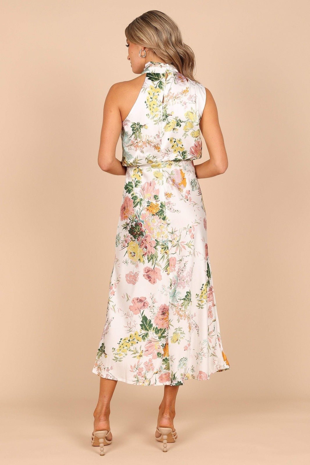 Trista Baskılı Boyundan Bağlamalı Midi Elbise