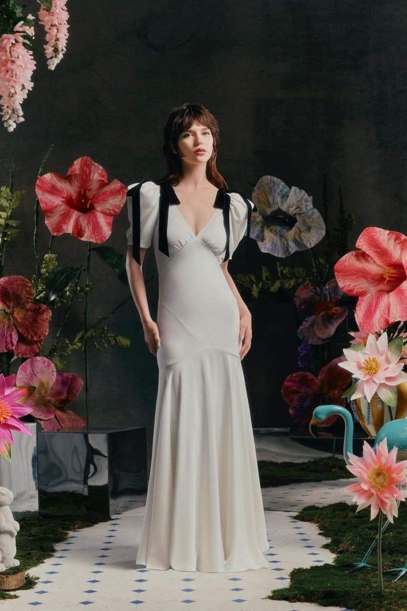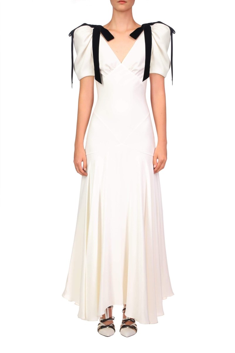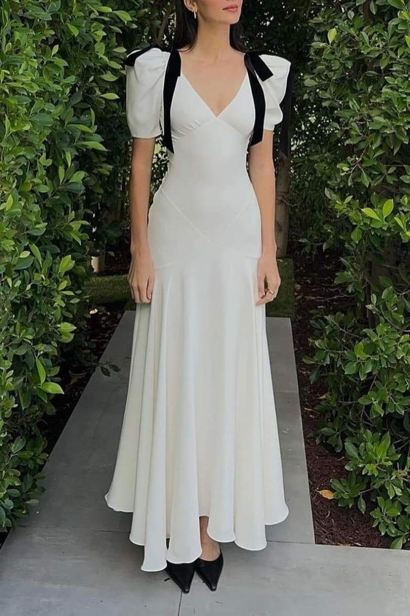 Valentina Puf Kol Fiyonklu Maxi Elbise