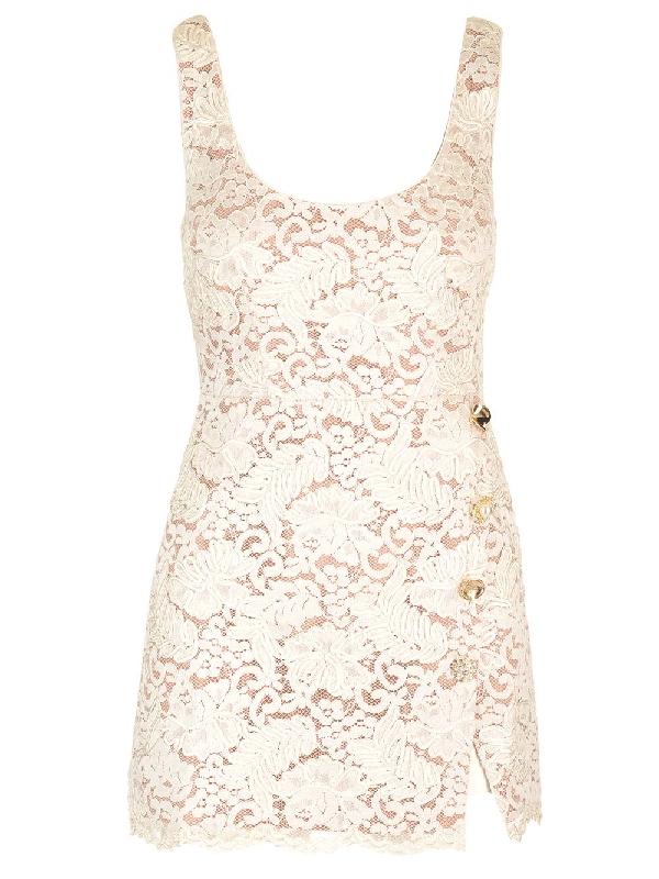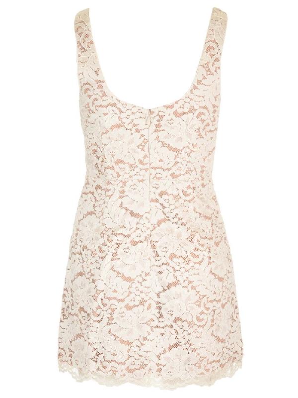 Veronica Çiçekli Dantel Mini Yırtmaçlı Elbise