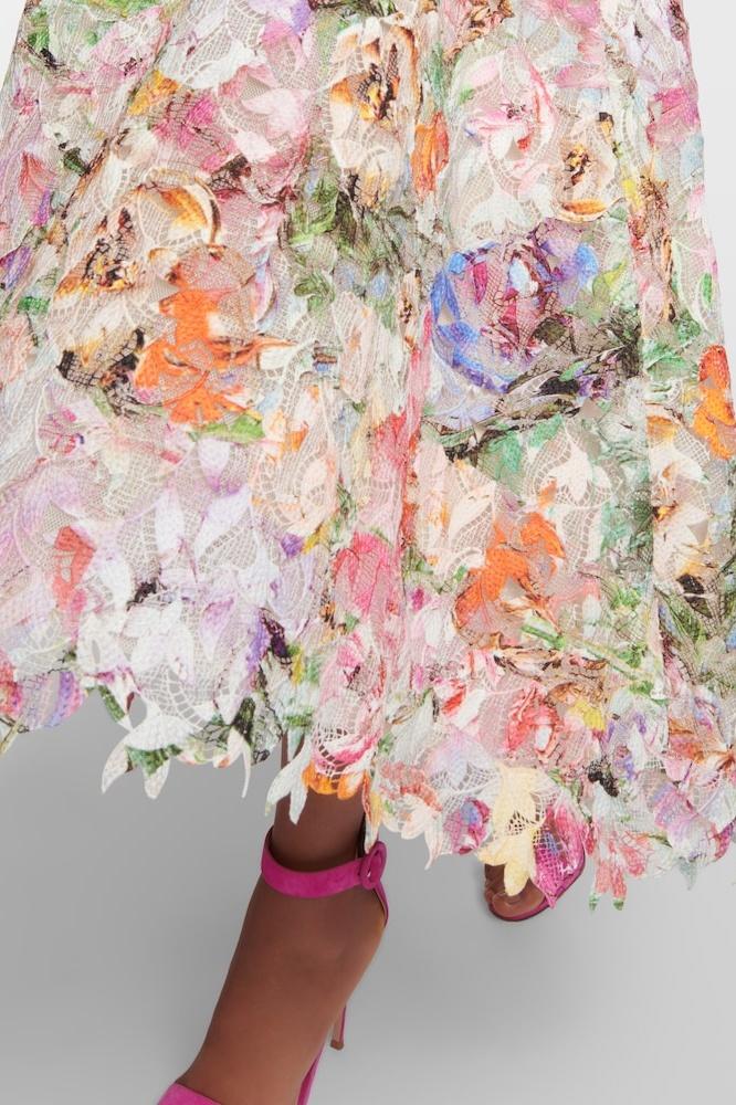 Mor Çiçek İşlemeli Dantel Midi Elbise