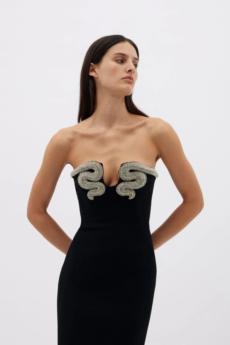 Virginia Kristal Taşlı Straplez Polyester Maxi Elbise