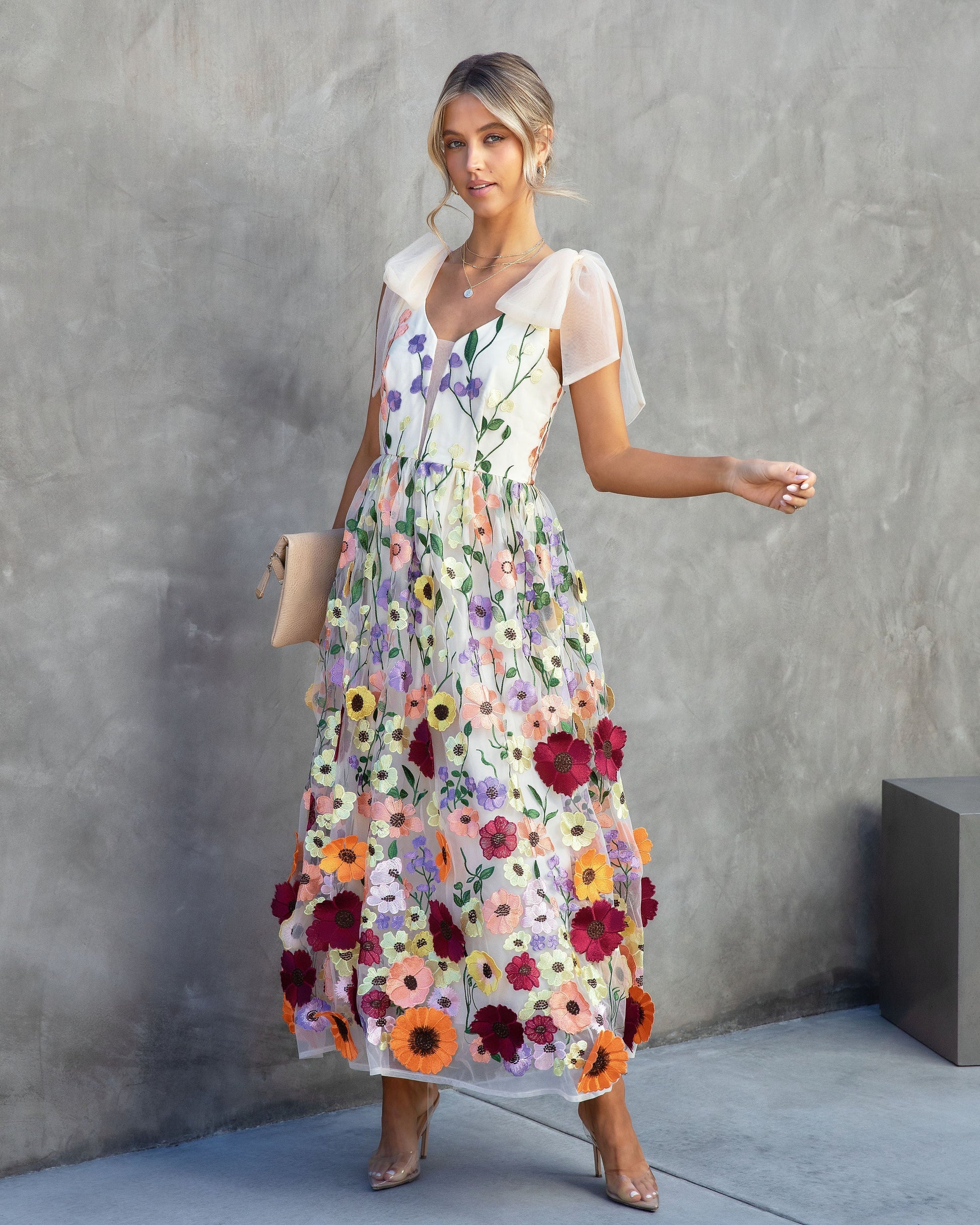 Wish Upon A Dream Çiçek Aplikeli Midi Elbise