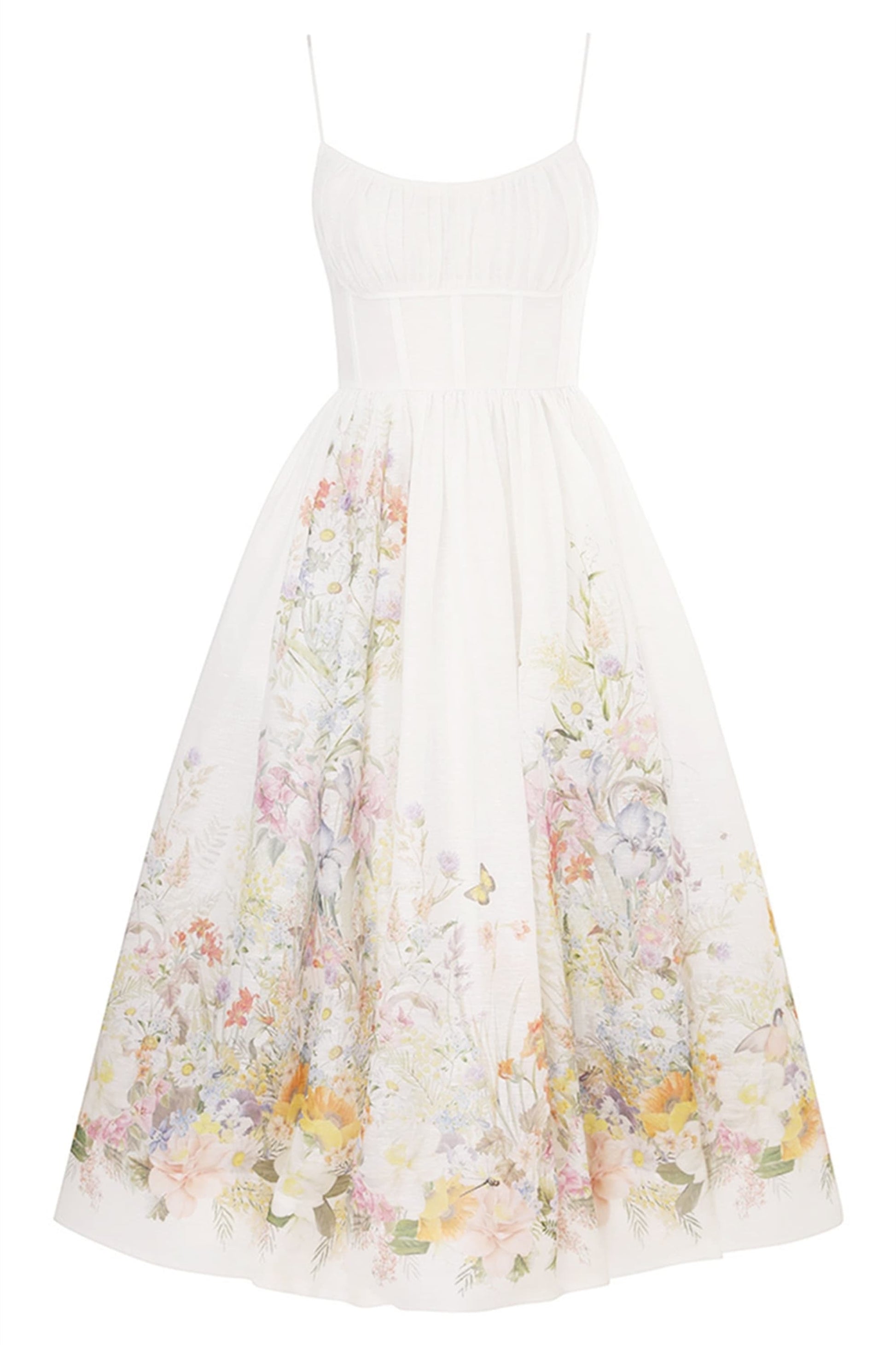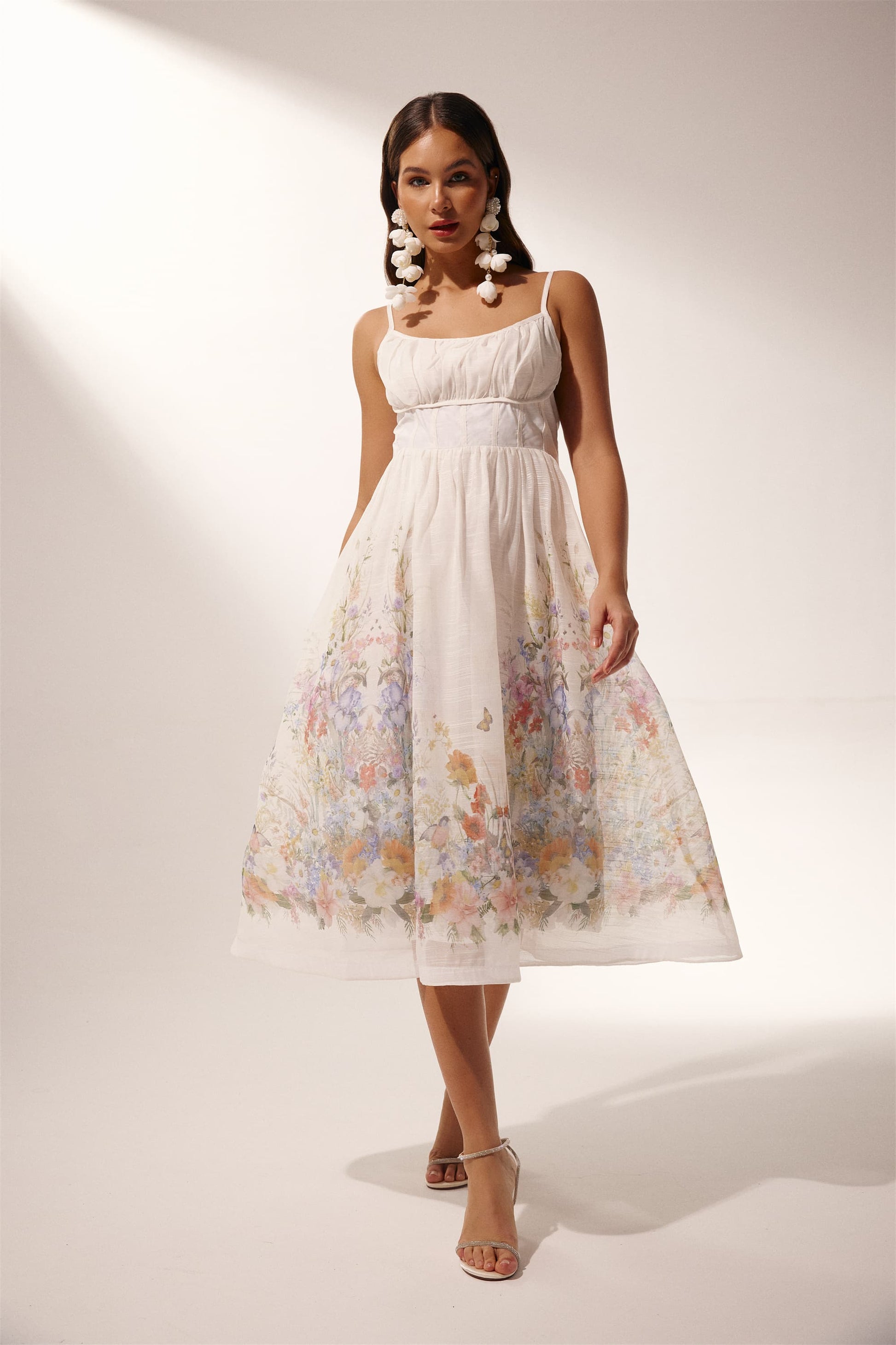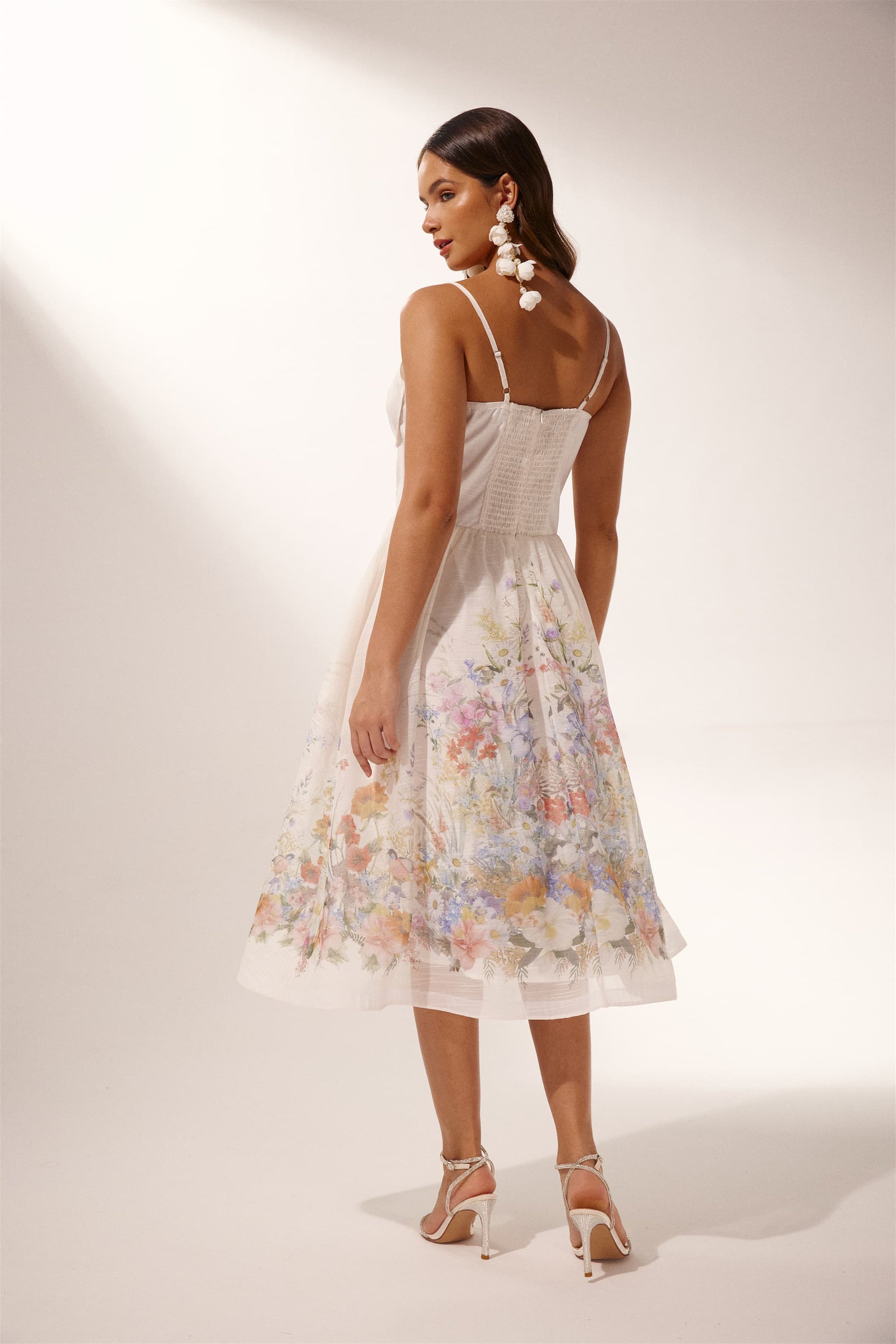 Yoland Çiçek Baskılı Dantelli Midi Elbise