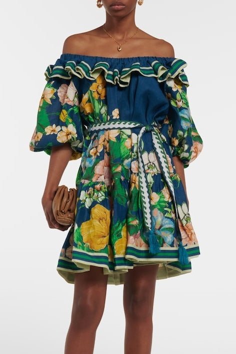 Yolanda Omuzu Açık Çiçek Baskılı Mini Elbise