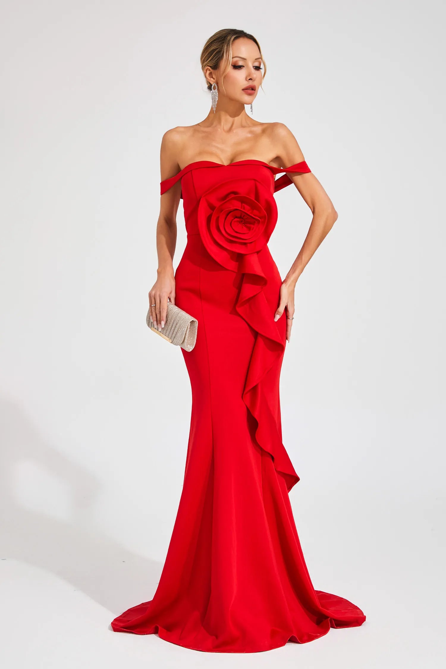 Ysolde Kırmızı Gül Bandajlı Uzun Elbise