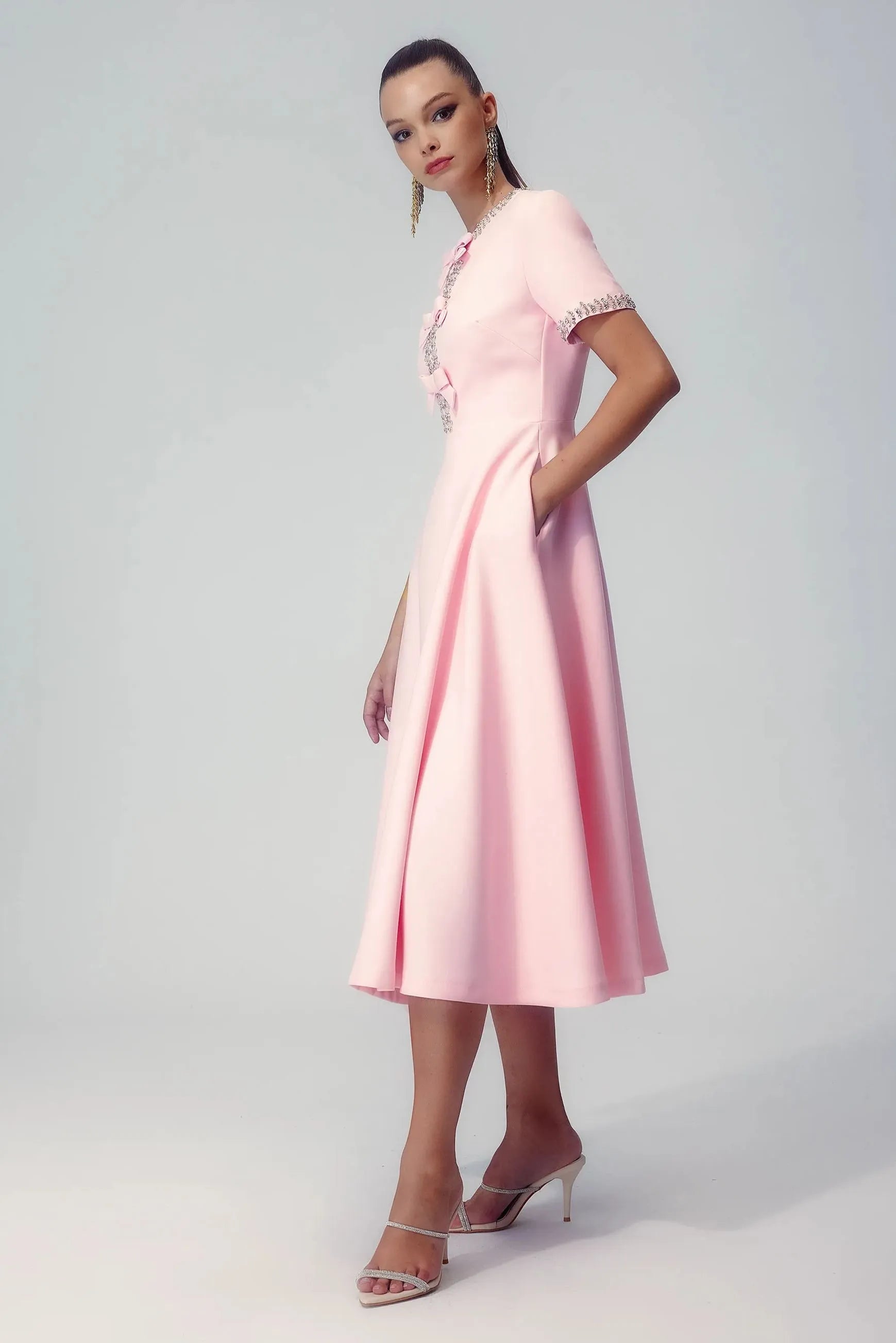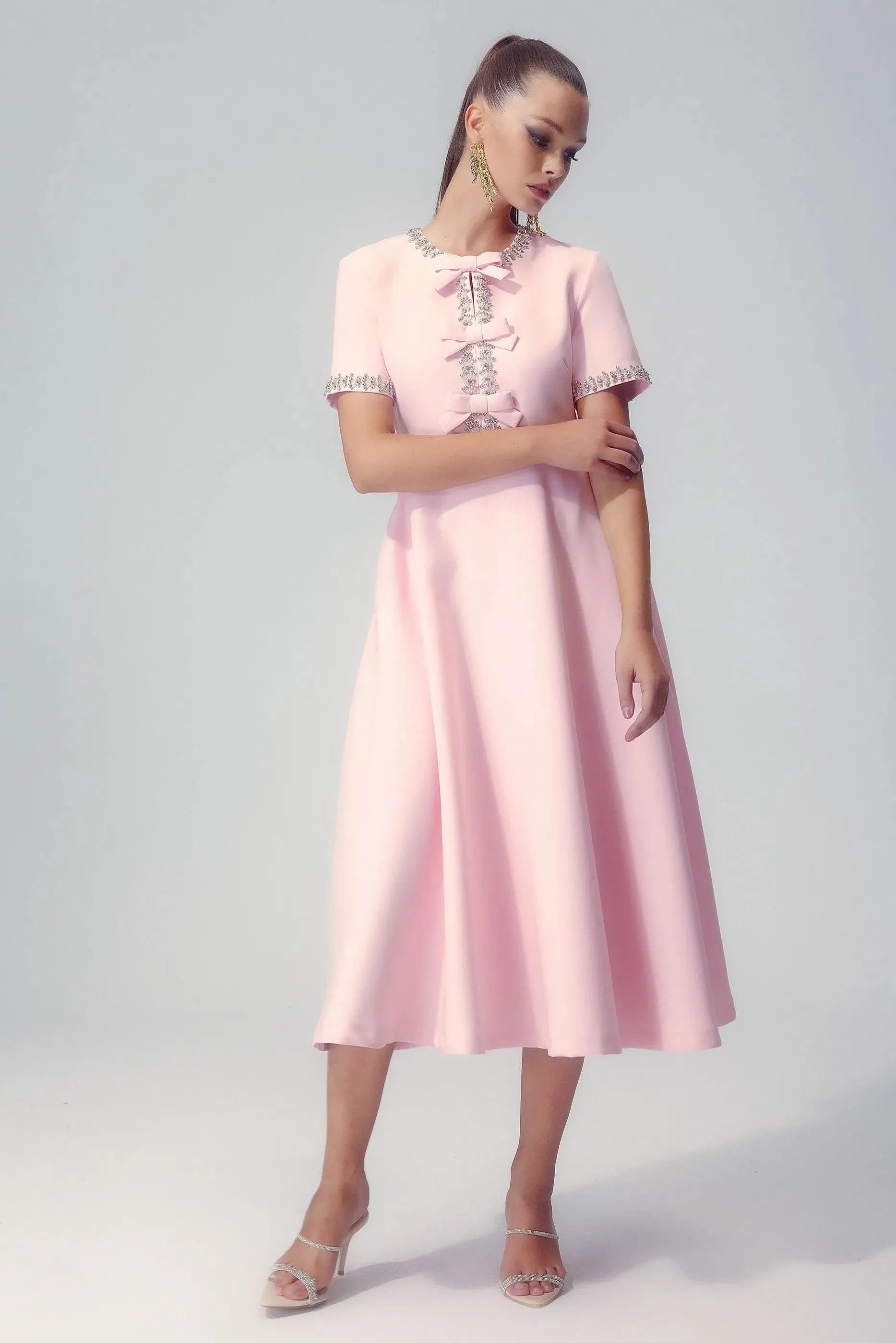 Zoe Fiyonklu Kristal Süslemeli Midi Elbise