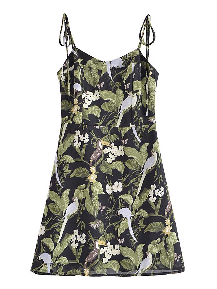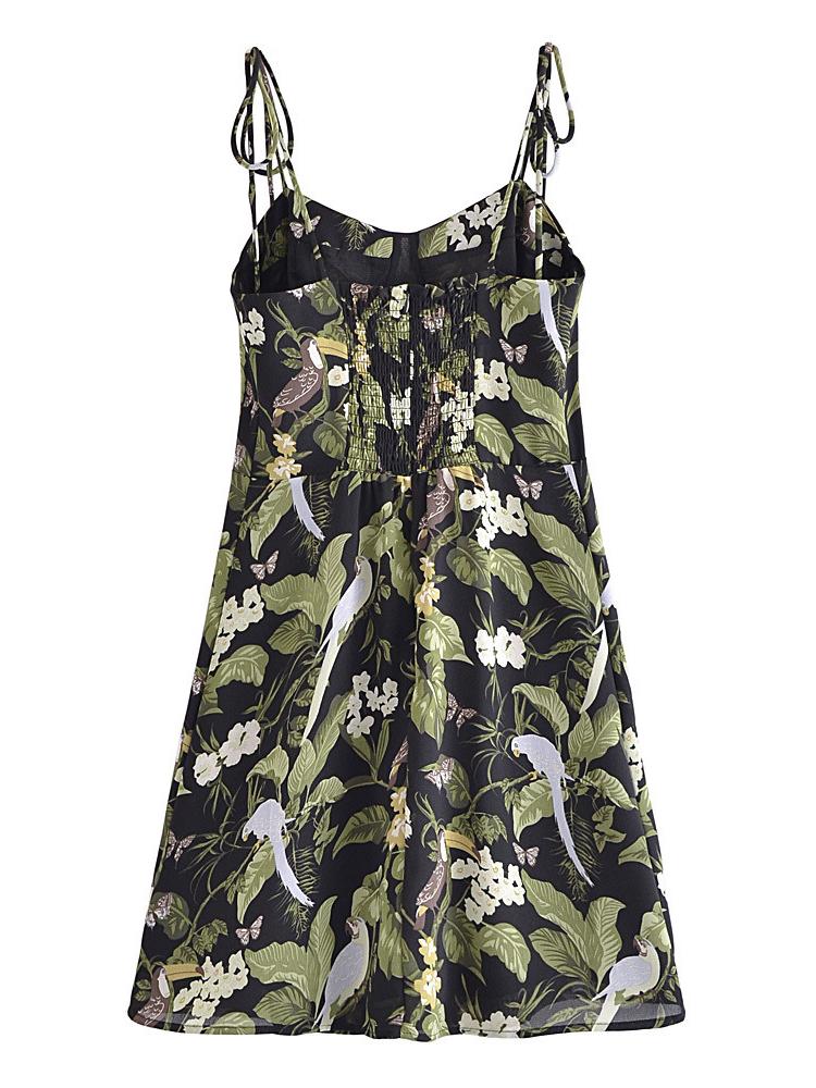 Zoe Tropikal Baskılı Mini Şifon Slip Elbise